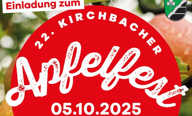 Am 05. Oktober 2025 findet im Schwimmbad Kirchbach das 22. Kirchbacher Apfelfest statt. Der Eintritt ist FREI, das Fest findet bei jeder Witterung statt. Das Fest beginnt um 09.00 Uhr mit einem ökumenischen Gottesdienst, gefolgt von einem Frühschoppen mit der Trachtenkapelle Alpenrose Waidegg. Es gibt auch ein Kinderprogramm sowie eine Tombola Verlosung und eine Modenschau von Ena-Näh.