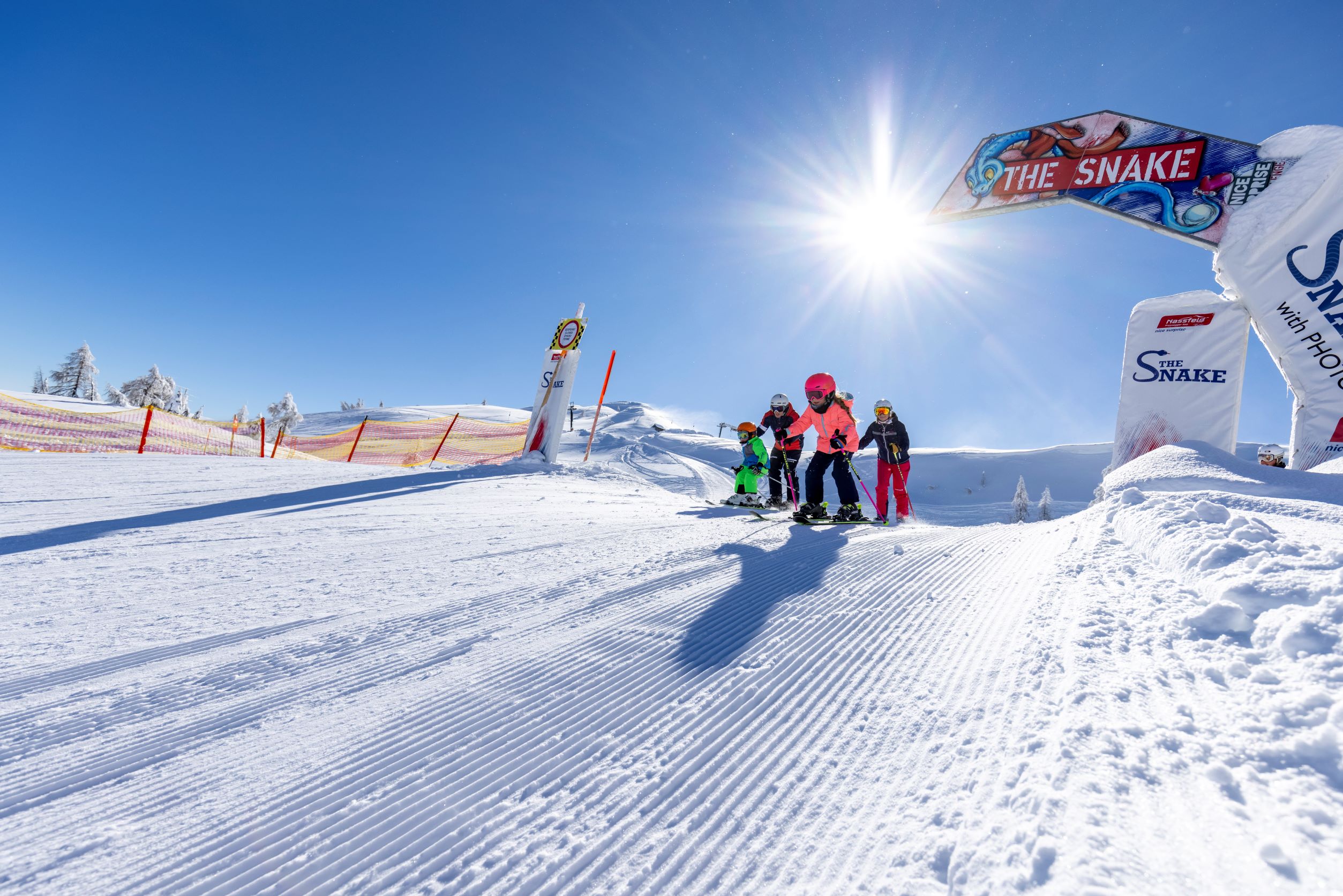 Raus aus der Lieblingspisten-Komfortzone und rein ins Abenteuer! Wer am Nassfeld die Herausforderung an nimmt und bereit ist für Neues, wird doppelt belohnt: Mit einer Sammlung an unvergesslichen Momenten und der Chance auf wertvolle Gewinne. Denn im Rahmen der Nassfeld Challenge machen sich die Teilnehmer auf die Jagd nach sogenannten Badges. Manche dieser „Trophäen“ sind leicht zu haben, für andere muss man sich schon etwas ins Zeug legen. Doch egal ob „Hillclimber Badge“ in Gold für 20.000 gefahrene Höhenmeter am Tag oder „Nassfeld Kinostar Badge“ für ein lustiges Erinnerungsfoto. Ob Abstecher zur Erlebnispiste „The Snake“ oder ein Selbstversuch auf der Ski Movie Rennstrecke inklusive Video für zuhause – Spaß und Abwechslung ist an jeder dieser Pisten-Attraktionen garantiert. 14 verschiedene Badges bzw. Highlights stehen auf der Liste der Sammler. Welche und wie viele „Disziplinen“ man in Angriff nehmen möchte, bleibt jedem selbst überlassen. Sicher ist nur: Jeder gesammelte Badge ist ein Los im Topf und erhöht die Gewinnchance. Und egal ob das Abschneiden im Vergleich zum „Mitbewerber“ oder der Wunsch nach mehr Abenteuer auf der Piste im Vordergrund stehen – mit der Nassfeld Challenge gewinnt jeder!