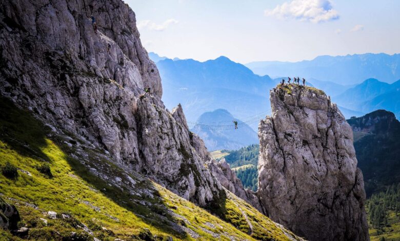 Der Klettersteig Däumling befindet sich im Gartnerkofelmassiv und hat eine Länge von 500 Metern & 150 Höhenmetern. Erreichbar ist dieser bequem mit der Gartnerkofel-Sesselbahn und einer kurzen Wanderung bis zum Einstieg. Die Highlights des Klettersteiges sind die 40 Meter lange Nepalbrücke, eine Hängebrücke, die felsigen Steige und zwei weitere kleine Hängebrücken, welche einiges an Mut abverlangt. Im Anschluss ist auch der Gipfel des Gartnerkofels mit einer kleinen Wanderung (ca. 20 Minuten) leicht zu erreichen. Belohnt wird man ebenfalls auf der Panoramaterrasse „Sky Plate“ mit sensationellen Ausblicken in die weitläufige Bergwelt der Julischen- und Karnischen- und Gailtaler Alpen.