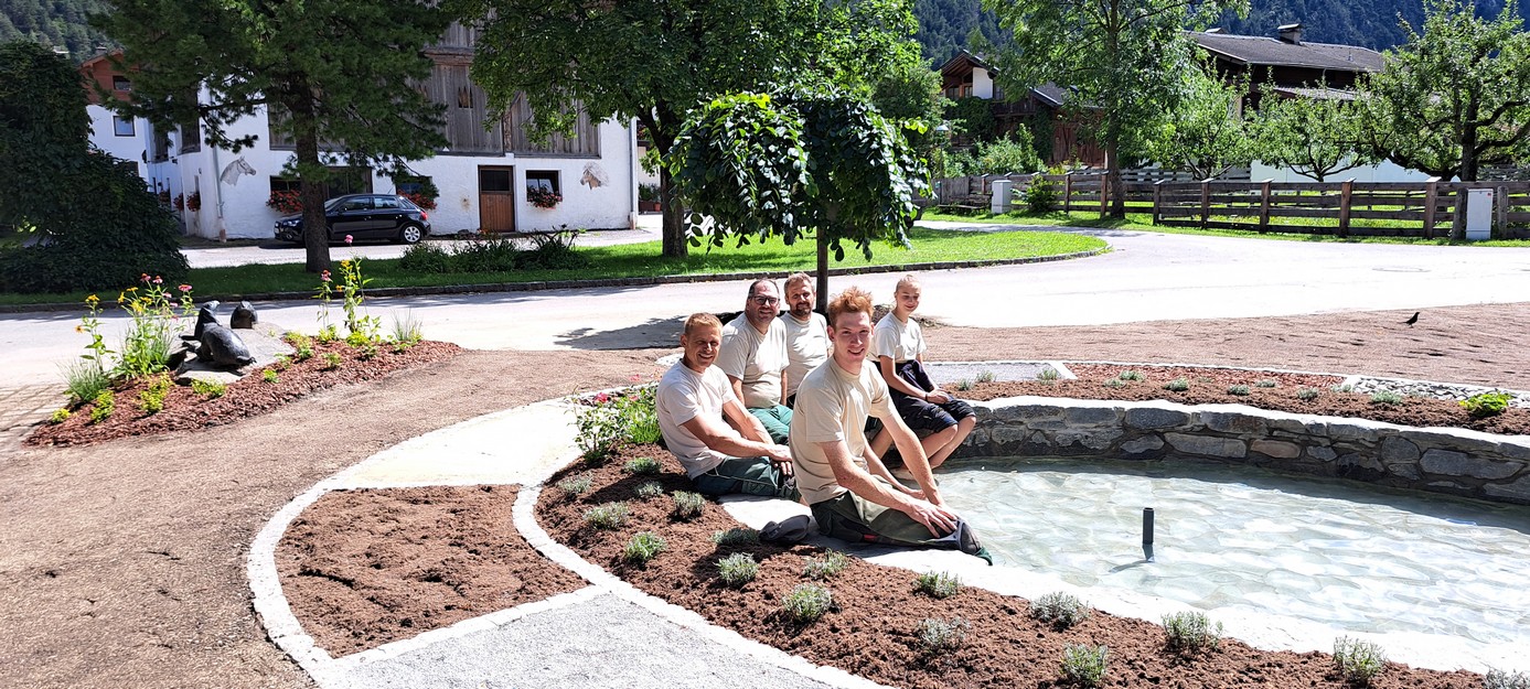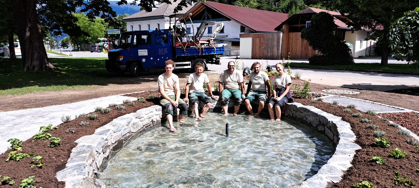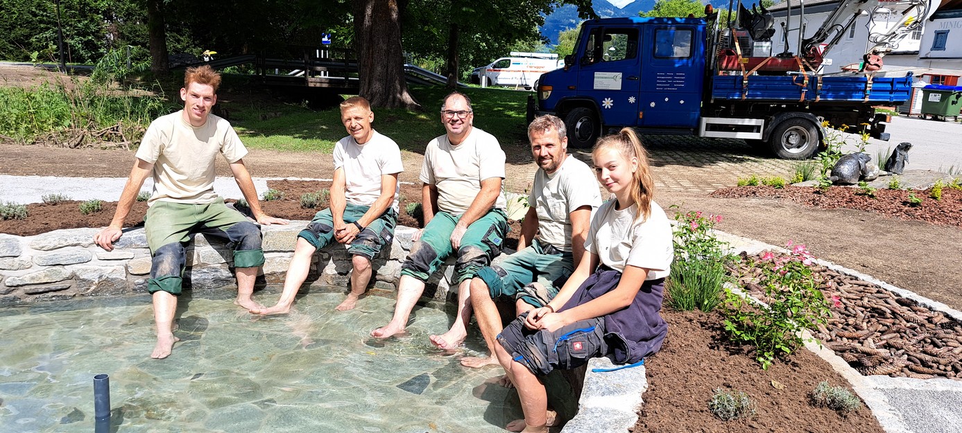 Ein unverbautes Stück Parkwiese bot den optimalen Platz für die Entstehung des neues Wassertretbeckens und Dip. – Ing. Andreas Wieser von „Gärten mit Esprit“ das notwendige Knowhow für die fachmännische Umsetzung.