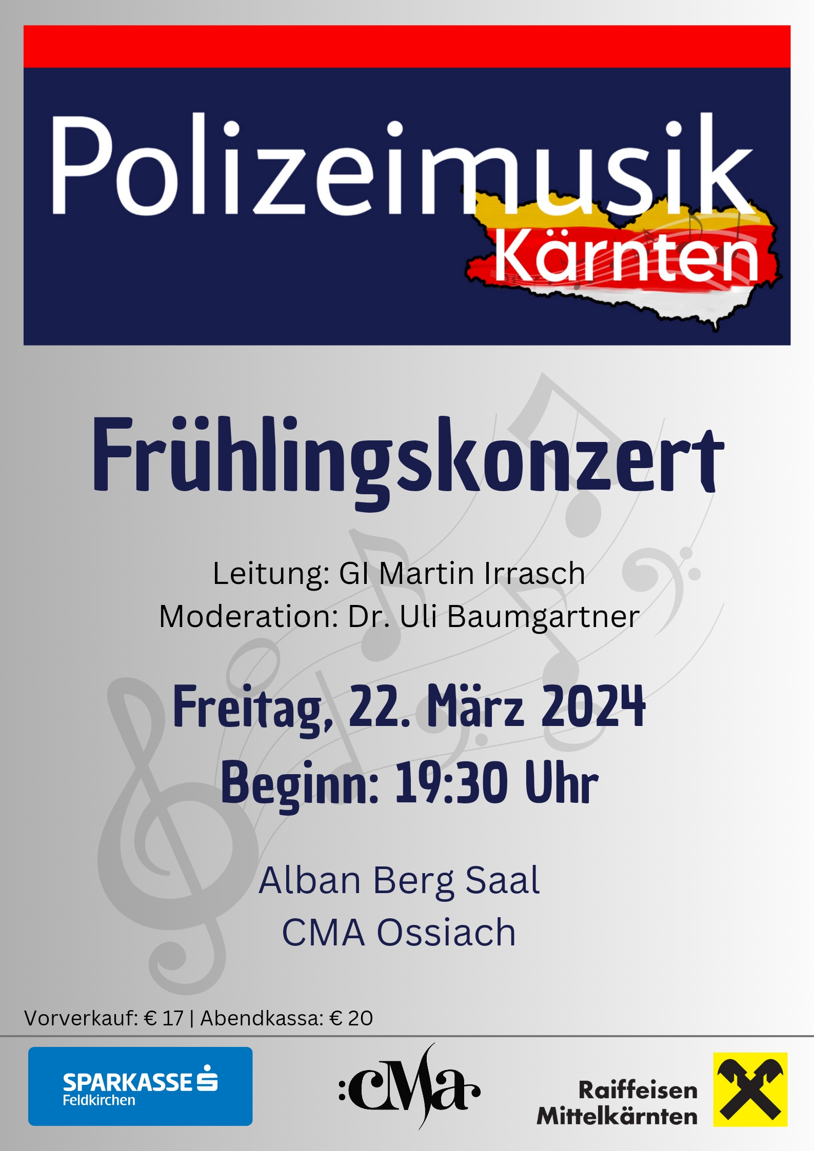 Vorverkauf: Carinthische Musikakademie, oder bei jedem Polizeimusiker.