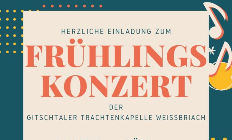 Es ist wieder so weit und die Gitschtaler Trachtenkapelle Weißbriach veranstaltet am Ostersonntag, den 31.03.2024 um 19:30 Uhr im Kultursaal in Weißbriach ihr alljährliches Frühjahrskonzert.