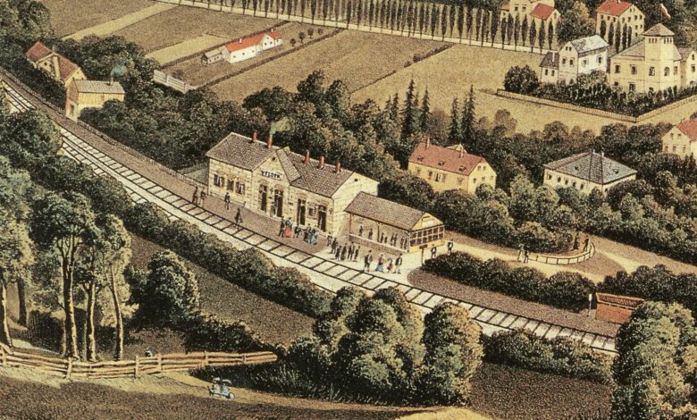 Der Veldener Bahnhof um 1900. Detail aus einem Gemälde von Carl Haas. © Veldener Gemeindearchiv