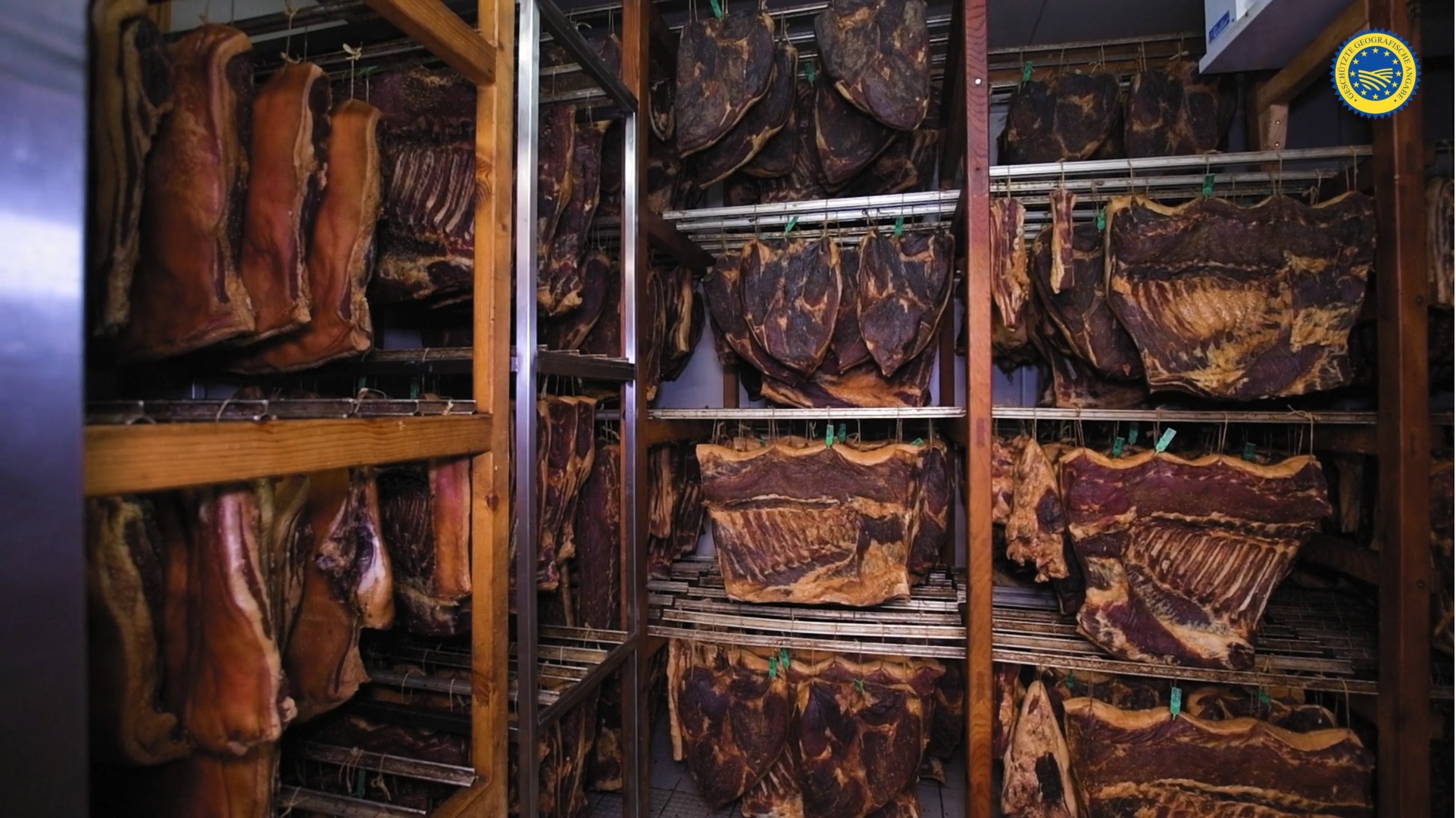 Die Gailtaler Spezialität in der Reifekammer © Verein Gailtaler Speck g.g.A.