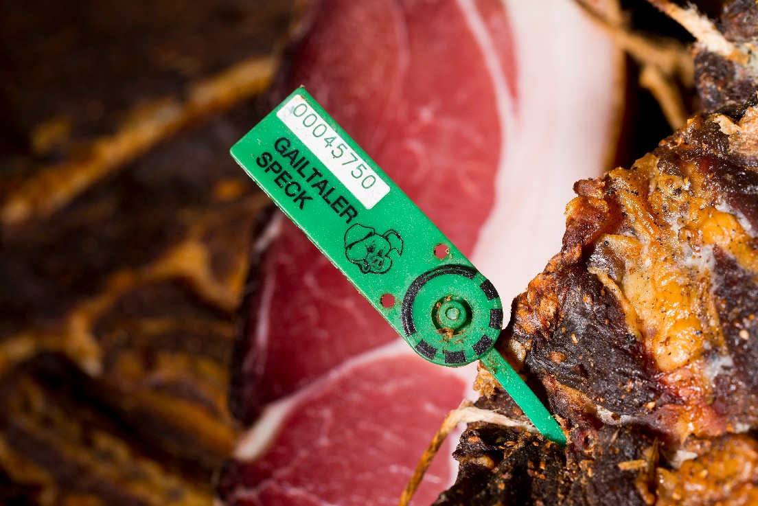 Die Qualität und Herkunft des Gailtaler Specks g.g.A. wird durch die grüne bzw. rote Verplombung garantiert, wobei die grüne Plombe zeigt, dass der Speck aus landwirtschaftlichen Betrieben der Speckbauern und -Bäuerinnen stammt, während die rote Plombe die Produktion durch einen Fleischereibetrieb kennzeichnet. Dieses Siegel gibt Verbraucher:innen die Sicherheit, ein echtes Stück Kärntner Tradition zu genießen.