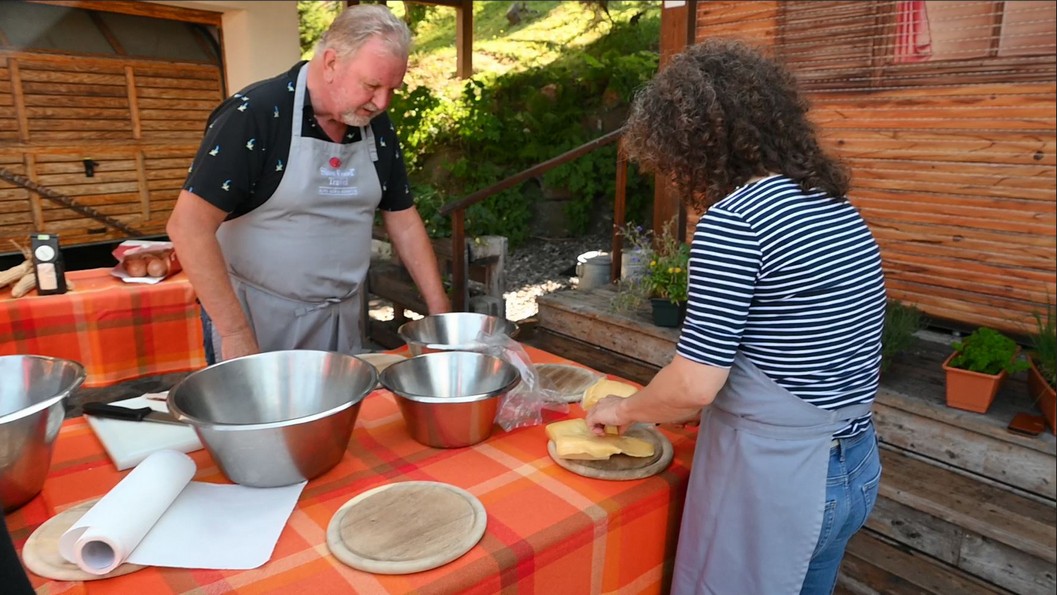 In geselliger Runde wird das Ergebnis der Arbeit genossen und danach darf ein kleiner Obstler nicht fehlen. Satt und zufrieden lässt man seinen Blick über die atemberaubende Gegend schweifen: So knapp an der italienischen Grenze kann man die Holzknechte förmlich bei ihrem Aufstieg beobachten und fühlt sich in vergangene Zeiten versetzt.