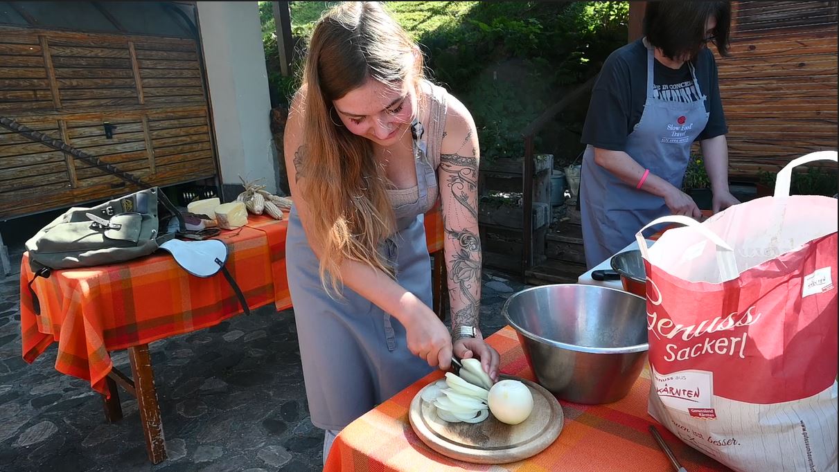 Bei der Zubereitung wird in Scheiben und Würfel geschnitten und gelacht. Das Probieren der leckeren, regionalen Zutaten ist ausdrücklich erlaubt und so kann es gut vorkommen, dass während der Zubereitung das ein oder andere Schneidbrett durch die Runde geht.