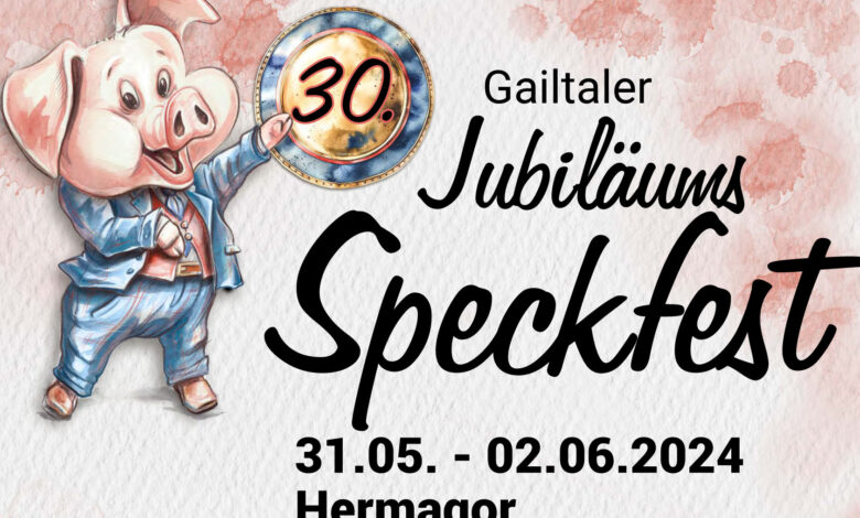 Feiern Sie mit uns das 30. Gailtaler Speckfest vom 31. Mai bis 2. Juni 2024! Erleben Sie ein Wochenende voller Tradition, Musik und kulinarischer Genüsse in Hermagor.