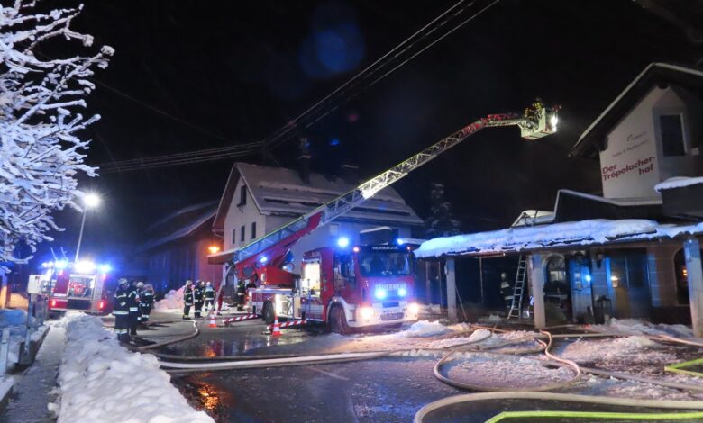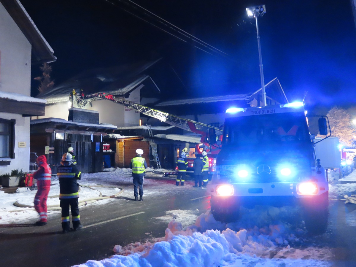 Am 18.01.2023 kam es in einem Hotel in Tröpolach (Gemeinde und Bezirk Hermagor) zu einem Brand in einem Lagerraum. Kurz nach 2 Uhr Früh wurde Großalarm für die Feuerwehr ausgelöst. Verletzt wurde niemand.