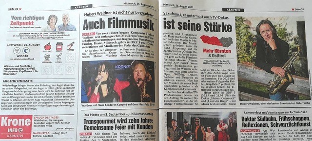 Hier die Zeitungsartikel und Screenshots über meine Arbeiten bisher bezüglich „Land der Berge“ und „Heimat Österreich“ Dokumentationen