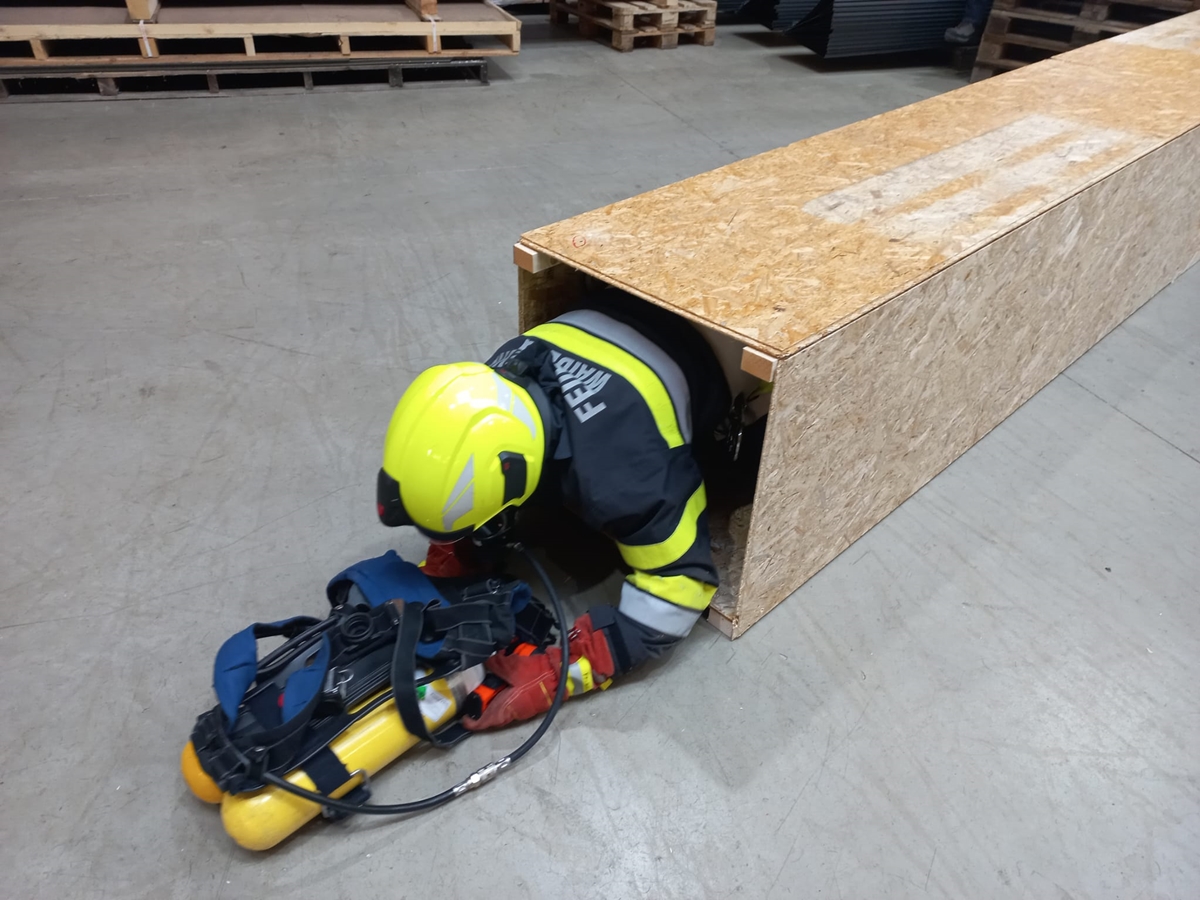 Dabei mussten die 13 teilnehmenden Atemschutztrupps drei spannende Stationen bewältigen. Zu Beginn der Übung stand das richtige Anlegen der Atemschutzausrüstung im Vordergrund. Bei der nächsten Station mussten die Atemschutzgeräteträger einen Parkour bewältigen, wobei das Ablegen des Atemschutzgerätes beim Durchkriechen eines Kanales die Trupps forderte. Die abschließende Station stand im Zeichen einer Personensuche mit Wärmebildkamera in einer verrauchten Werkstatt und das schonende Retten des Verletzten.