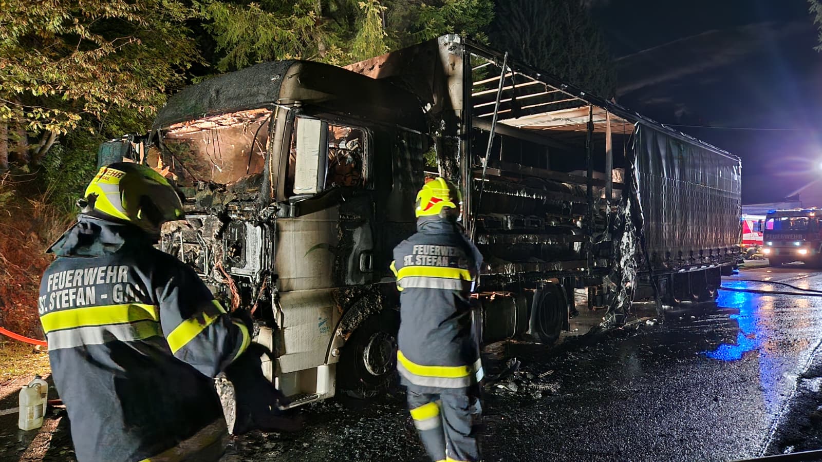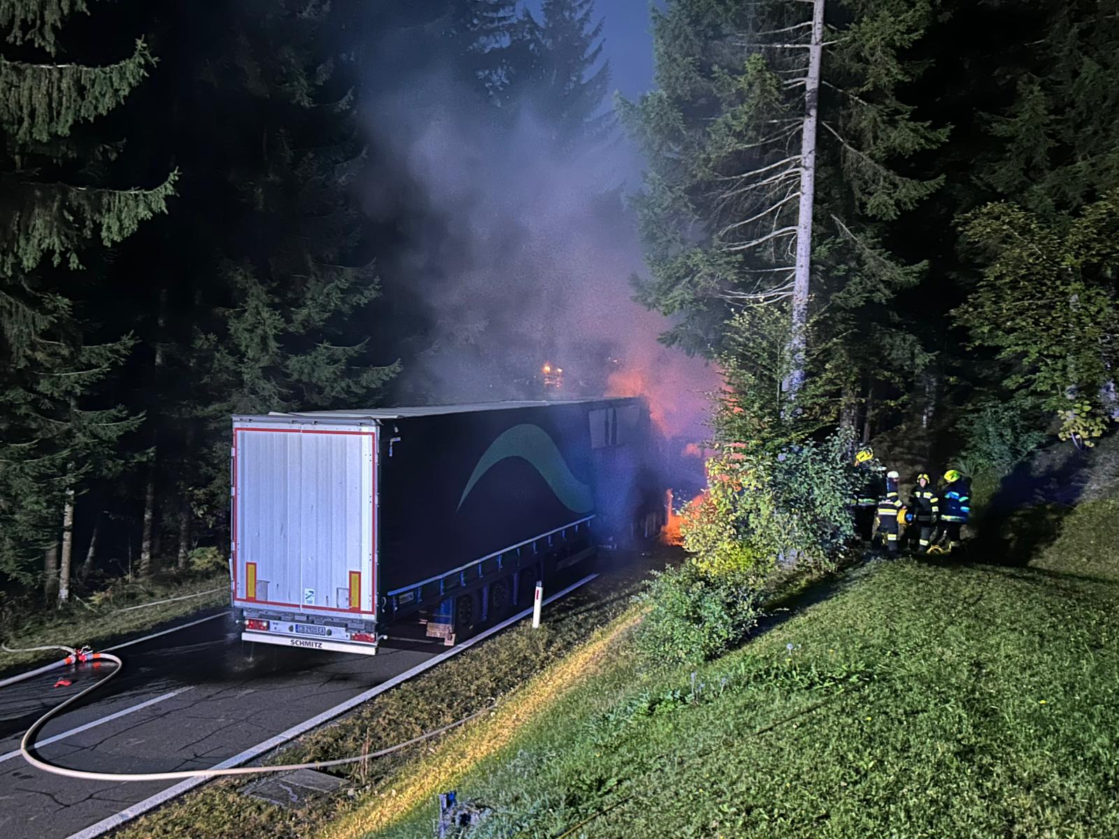 Am 7. Oktober 2025 um 18:49 Uhr kam es auf der Kreuzner Landesstraße (L33) bei Matschiedl, Gemeinde St. Stefan im Gailtal, Bezirk Hermagor, zu dem Brand eines Sattelschleppers. Der Lenker blieb unverletzt.