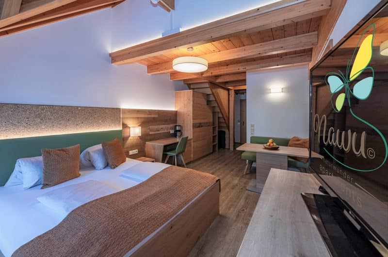 Wenn Sie in Ihrer Auszeit vom Alltag hoch hinaus und dabei bodenständig bleiben wollen, sind Sie in den „nawu naturwunder apartments“ genau richtig: