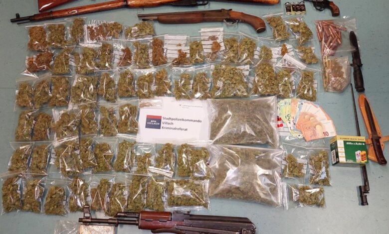 Bei den Hausdurchsuchungen wurden unter anderem 1,5 Kg Cannabiskraut, 1,5 Kg Cannabis, ca. 10 Gramm Heroin, 5 Gramm Kokain, geringe Mengen Magic-Mushrooms, Bargeld in der Höhe von mehreren tausende Euro, sowie Verpackungsmaterial, Suchtgift-Waagen, mehrere Waffen (eine AK 47, eine Faustfeuerwaffe Kat. „B“ ohne Seriennummer, 1 verbotene Waffe Schrotflinte gekürzt), Munition, Schrotpatronen und Handgranatenzünder sichergestellt