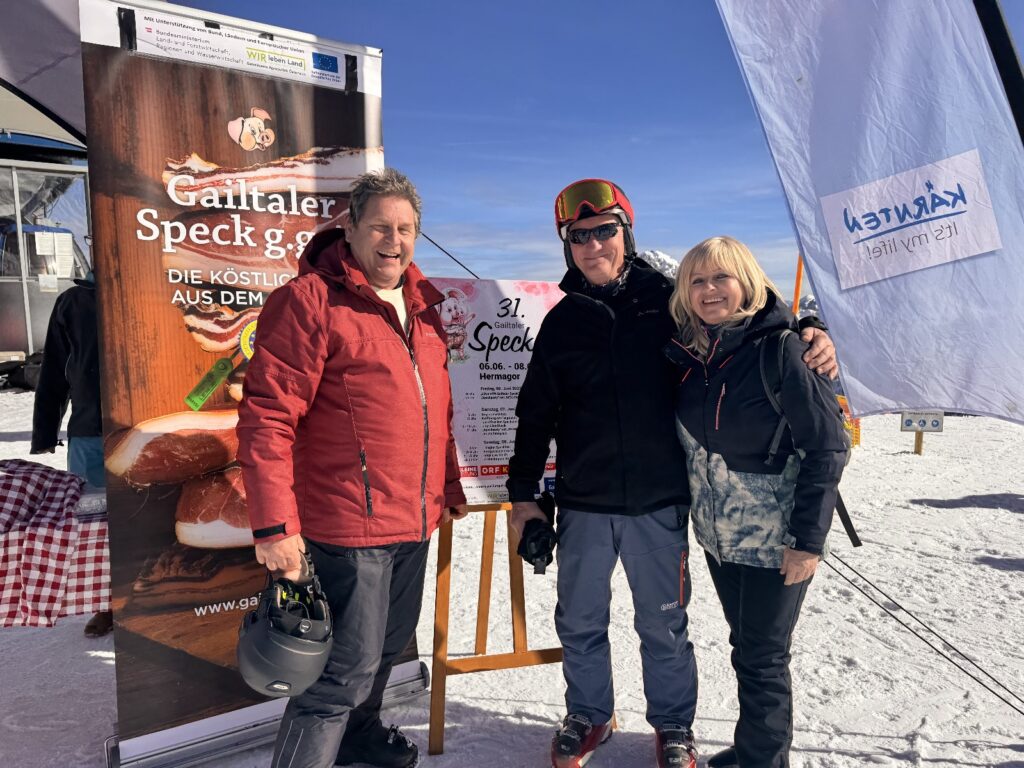 Am 21. Februar 2025 gab es am Nassfeld an der Bergstation des Millennium-Expresses nicht nur die atemberaubende Aussicht zu genießen – auch eine Verkostung des EU-geschützten Gailtaler Specks g.g.A. brachte die Sportbegeisterten zum Strahlen!