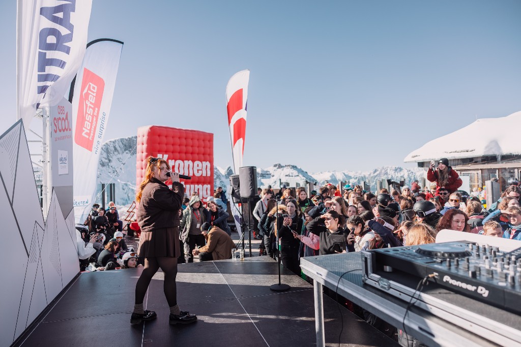 Das absolute Highlight: ein exklusives Konzert der deutschen Sängerin LOI auf 2.000 Metern Seehöhe. Bekannt aus Formaten wie „The Voice Kids“ oder „The Masked Singer“, begeisterte sie das junge Publikum mit Hits wie „Gold“ und „The Way I Want It“. Die Stimmung konnte nicht besser sein: strahlender Sonnenschein, eine verschneite Bergkulisse und begeisterte Schüler:innen, die gemeinsam tanzten und sangen.