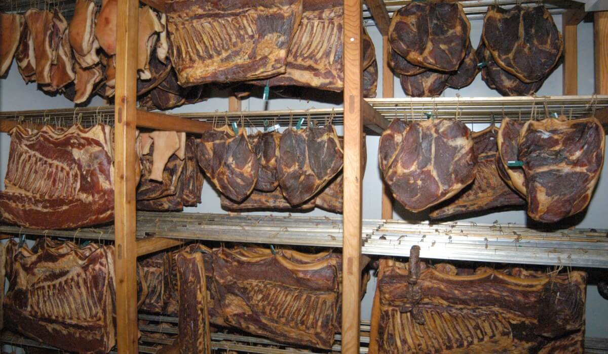 Das über Jahrhunderte bekannte und beliebte Veredelungsprodukt vereint alles, was auf keinem Tisch fehlen darf: Mürbe Konsistenz mit zartem Biss, mildsalziger Geschmack mit Knoblauch-, Pfeffer-, Wacholder- sowie Raucharomen und Fett, das förmlich auf der Zunge zergeht.