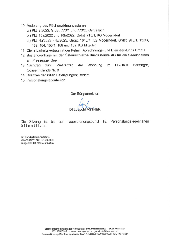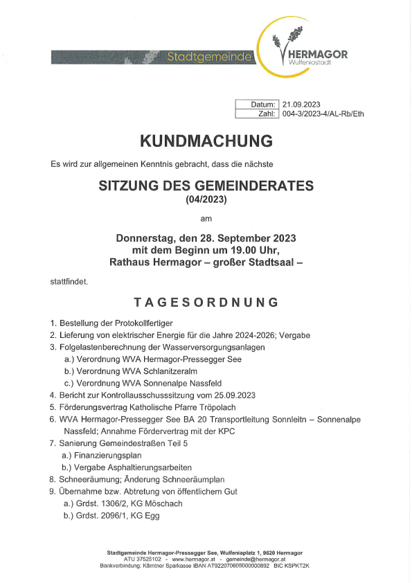 Kundmachung © Stadtgemeinde Hermagor-Pressegger See