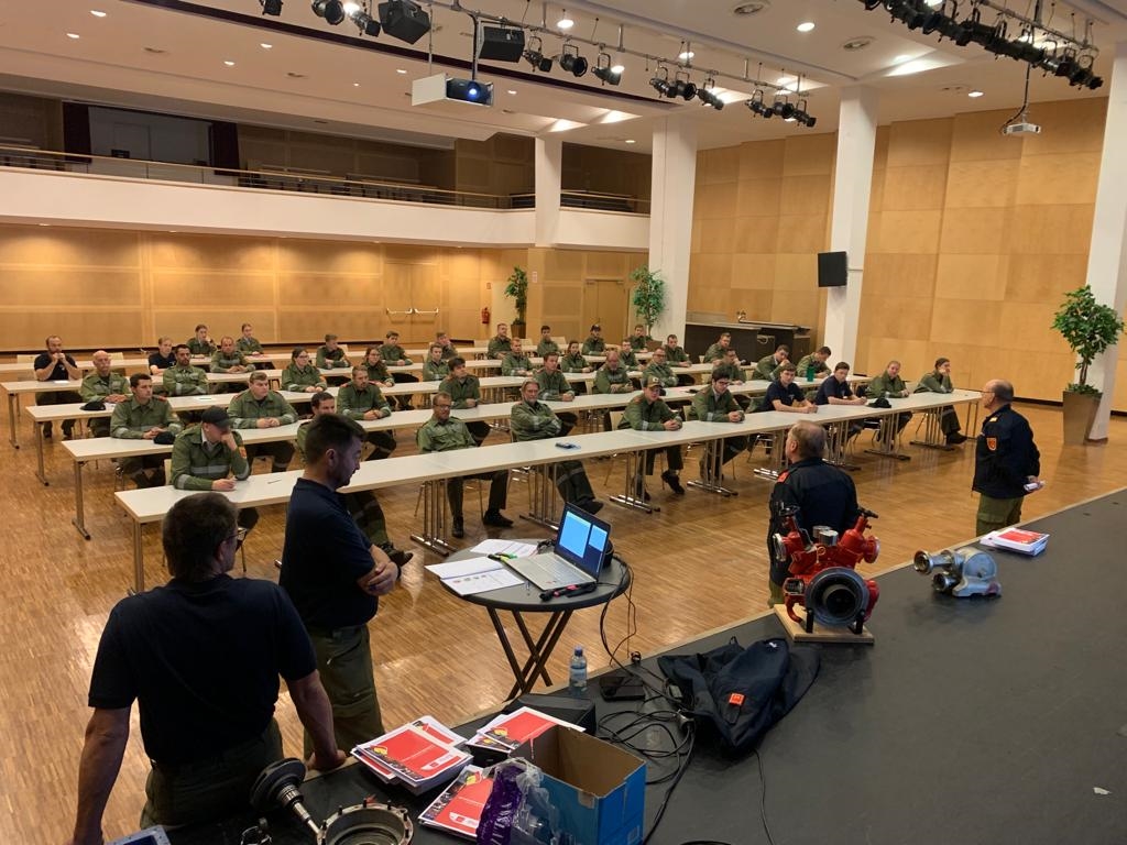 Nach einem Vormittag der Theorie im Lehrsaal, fand die restliche Ausbildung an den verschiedenen Tragkraftspritzen, Notstromaggregaten, Schmutzwasser- und Tauchpumpen im Freien statt. Den Abschluss der Ausbildung bildete eine gemeinsame Übung mit dem Thema „Wasserförderung über eine längere Wegstrecke“ sowie eine schriftliche und praktische Prüfung. Dabei konnten 18 „Ausgezeichnete Erfolge“ verzeichnet werden.