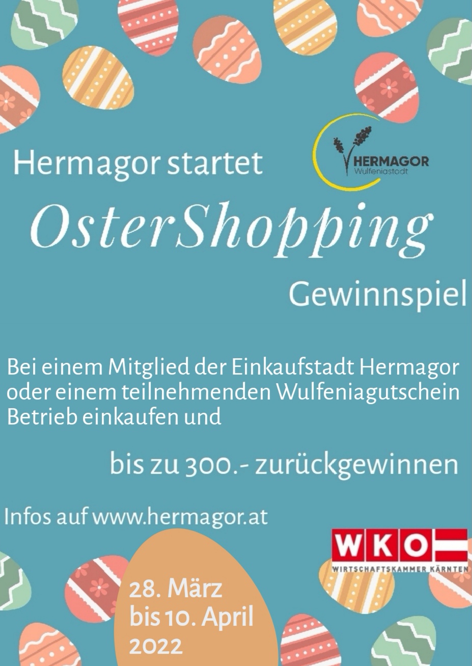 Das Gewinnspiel wird durch die Unterstützung der WKO sowie der Stadtgemeinde Hermagor-Presseggersee finanziert und findet im Zeitraum – 28.3.2022 bis 10.4.2022 – statt.