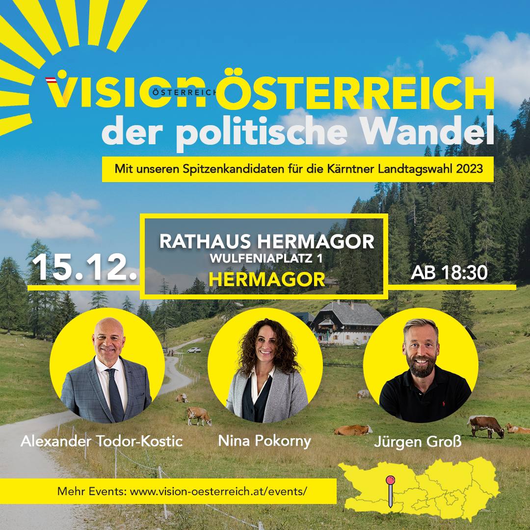 Sie sind herzlich willkommen zu dieser Veranstaltung, die am 15.12.2022 um 18:30 Uhr im Rathaus Hermagor am Wulfeniaplatz 1 stattfindet.