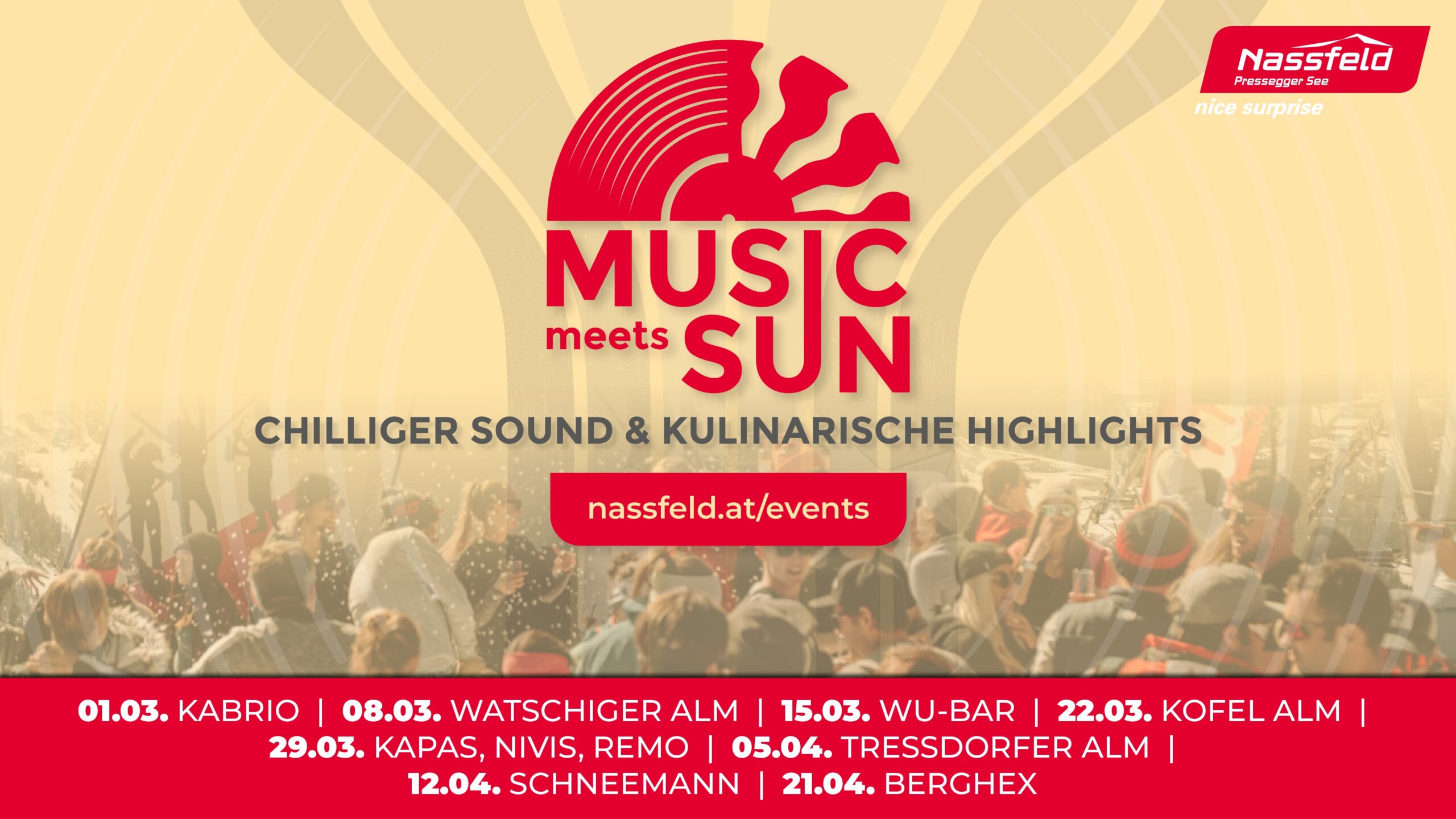 Wellenreiten am Pistenstrand in einem meterlangen Wasserbecken?! Klar doch! Auf der Sonnenalpe Nassfeld wird ein mega Wasserpool für den Waterslide Contest 2025 aus dem frischen Neuschnee gegraben. Skifahrer und Snowboarder aus den verschiedensten Nationen oder Fahrzeuge stellen sich am Samstag, den 15. März, der Herausforderung den Wasserpool so weit, so lustig und so cool es geht zu überwinden. Feinste Kulinarik aus der WU-BAR sowie sensationell coole Drinks der Barkeeper Monte Amoro & Select Aperitif bringen bestimmt jeden Genussskifahrer zum Strahlen.