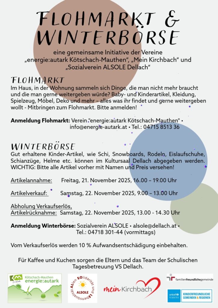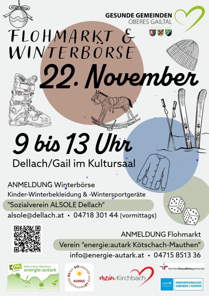 Im Kultursaal Dellach findet die beliebte Wintertauschbörse heuer erstmalig mit Flohmarkt statt – organisiert von den Vereinen AlSole (Dellach), Energie:autark (Kötschach-Mauthen) und „Mein Kirchbach“