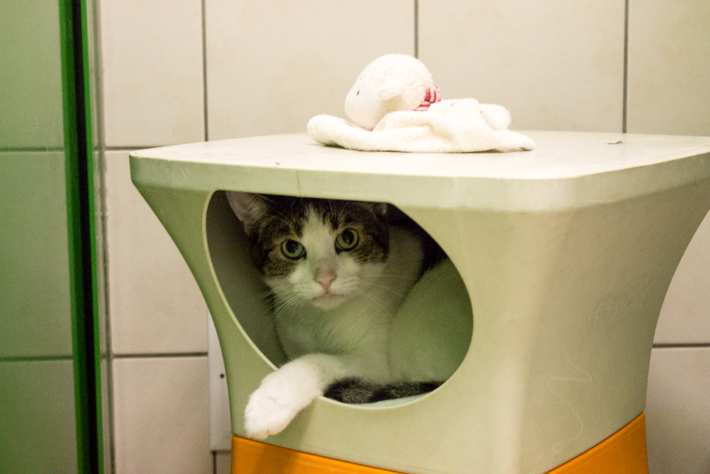 Bevor ich ins TiKo kam, war ich eine reine Wohnungskatze. Schon immer war ich scheu und eigen, aber so bin ich halt. Andere Katzen sind nicht so mein Ding, aber Hunde machen mir nichts aus, auch wenn ich mich lieber fern von ihnen halte. Was Kinder angeht, nun ja, ich bevorzuge es, in Ruhe gelassen zu werden. Früher habe ich auch schon mal zugebissen und gekratzt, aber aufgrund einer Zahnkrankheit wurden mir alle Zähne gezogen. Die größte „Gefahr“ ist also gebannt…
