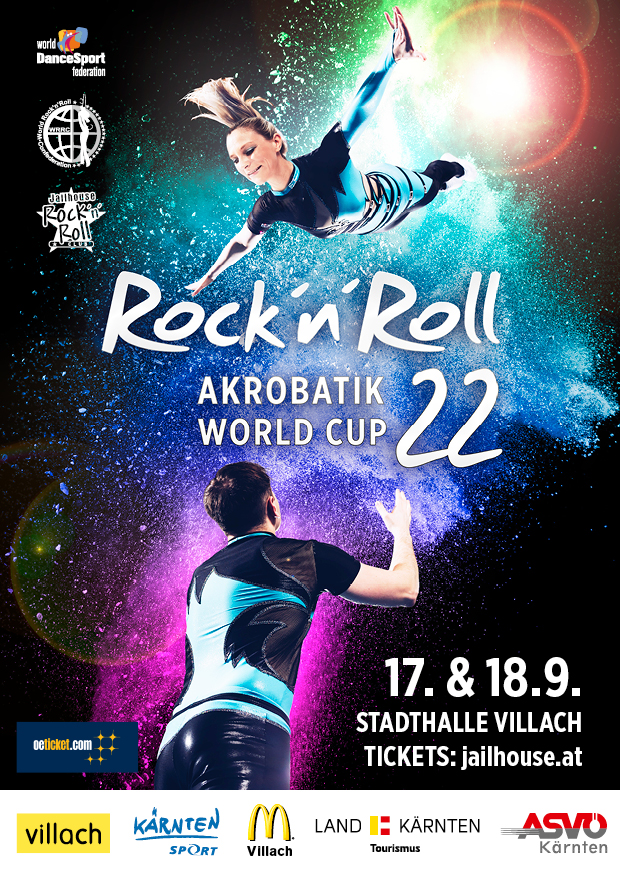 Sei dabei, wenn die weltbesten Rock`n`Roll AkrobatInnen und Formationen die Stadthalle in Villach zum Beben bringen! Die Stadthalle Villach ist erstmalig Austragungsort des international größten World Cup Turniers in Rock`n`Roll Akrobatik 2022. Die weltbesten Paare aus 18 Nationen tanzen in 6 Rock`n`Roll Startklassen und 2 Formationsklassen um die begehrten Trophäen. Lass dich von Schrauben, Todesstürzen und Salti begeistern!